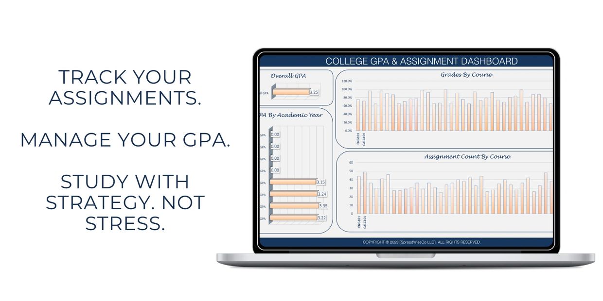 Transform your college academic management with our comprehensive GPA tracking spreadsheet designed specifically for students serious about academic success. Whether you're aiming to boost your GPA, maintain a 4.0, or strategically plan your study time, this dashboard provides the insights and organization you need to excel.