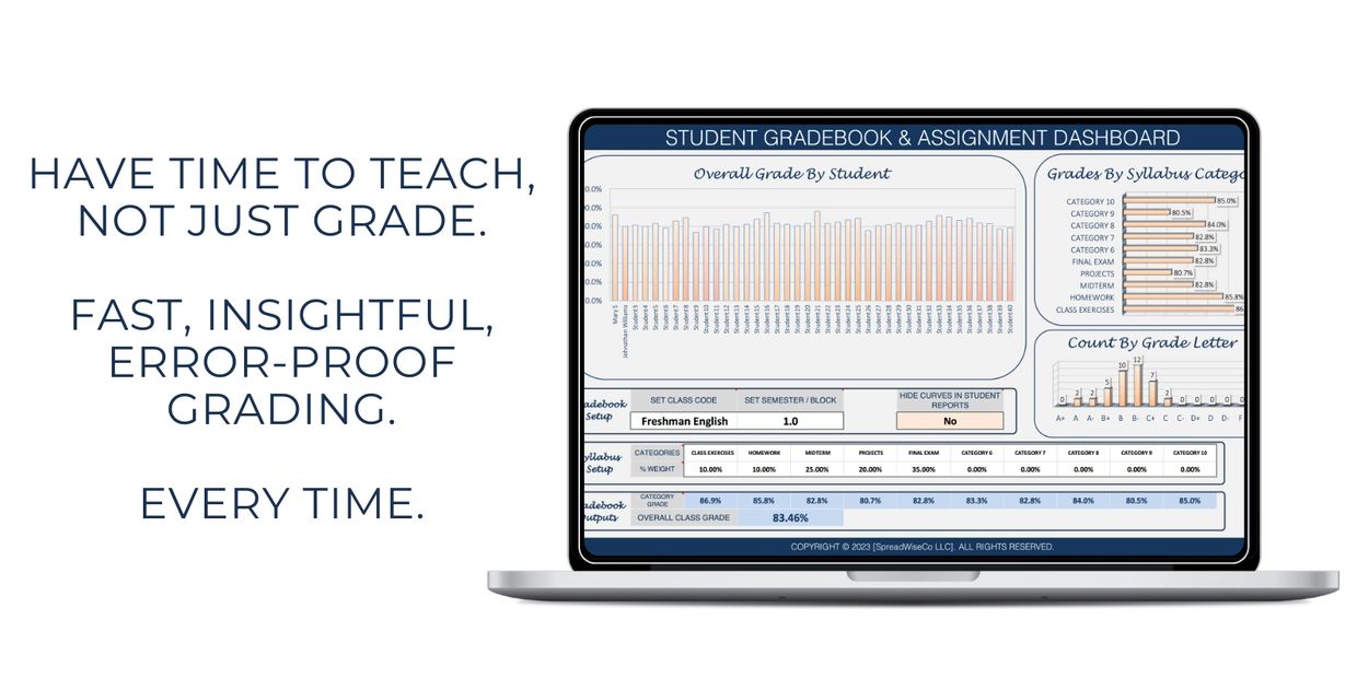 Simply input student grades - everything else calculates automatically. Built on a customizable 4.0 grading scale with automatic letter grade assignments and instant grade updates throughout the entire workbook.